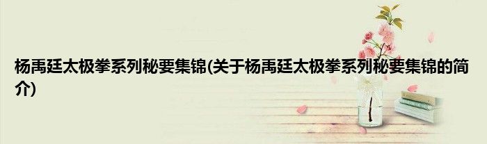杨禹廷太极拳系列秘要集锦(关于杨禹廷太极拳系列秘要集锦的简介)