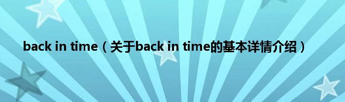 本文关于back in time的基本详情介绍就讲解完毕,希望对大家有所帮助。