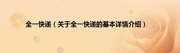 本文关于全一快递的基本详情介绍就讲解完毕,希望对大家有所帮助。