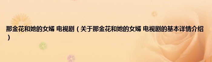 本文关于那金花和她的女婿 电视剧的基本详情介绍就讲解完毕,希望对大家有所帮助。