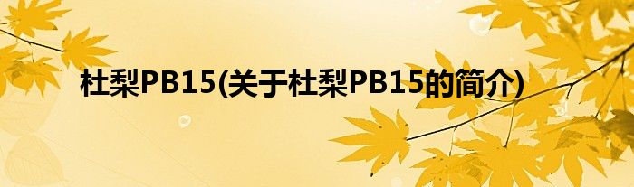 杜梨PB15(关于杜梨PB15的简介)
