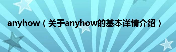 大家好我是小蝌蚪,anyhow,关于anyhow的基本详情介绍很多人还不知道,那么现在让我们一起来看看吧!