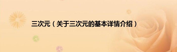 本文关于三次元的基本详情介绍就讲解完毕,希望对大家有所帮助。