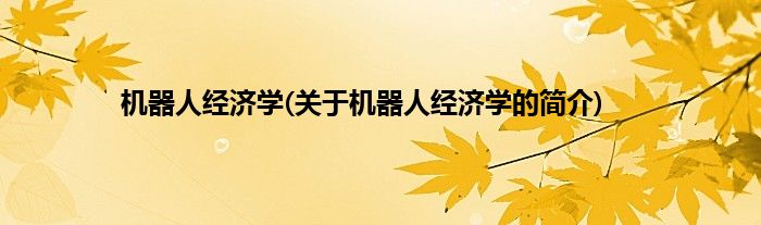 本文关于机器人经济学的简介就讲解完毕,希望对大家有所帮助。