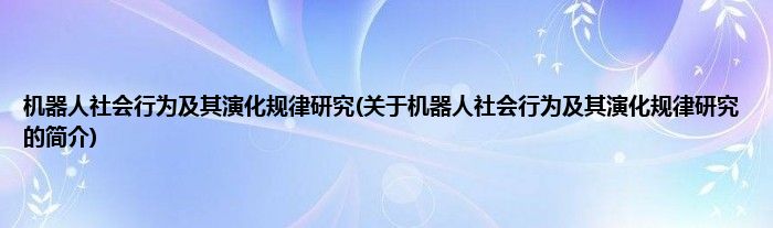 机器人社会行为及其演化规律研究(关于机器人社会行为及其演化规律研究的简介)