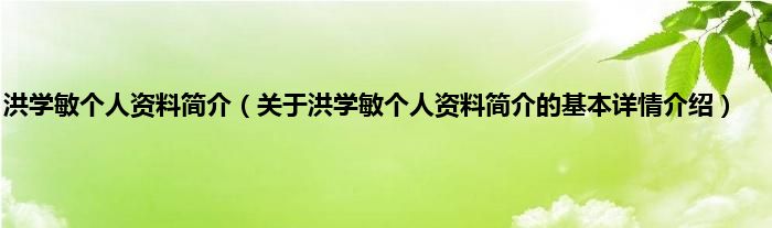 本文关于洪学敏个人资料简介的基本详情介绍就讲解完毕,希望对大家有所帮助。