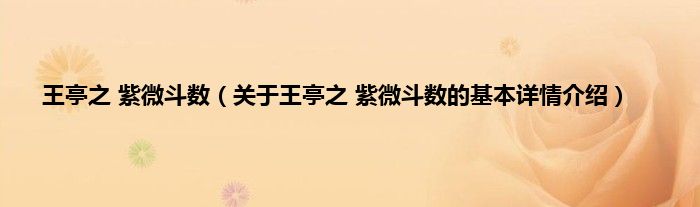 本文关于王亭之 紫微斗数的基本详情介绍就讲解完毕,希望对大家有所帮助。