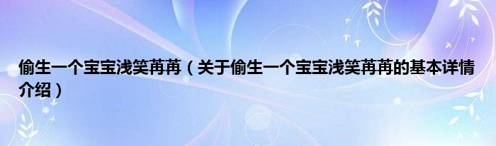 本文关于偷生一个宝宝浅笑苒苒的基本详情介绍就讲解完毕,希望对大家有所帮助。