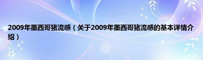本文关于2009年墨西哥猪流感的基本详情介绍就讲解完毕,希望对大家有所帮助。