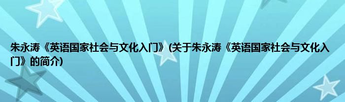 本文关于朱永涛《英语国家社会与文化入门》的简介就讲解完毕,希望对大家有所帮助。
