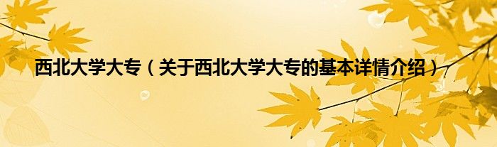 本文关于西北大学大专的基本详情介绍就讲解完毕,希望对大家有所帮助。