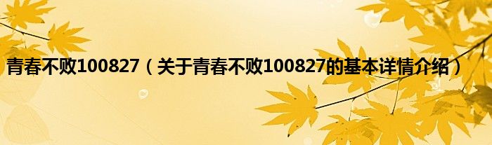 本文关于青春不败100827的基本详情介绍就讲解完毕,希望对大家有所帮助。