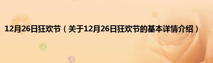 本文关于12月26日狂欢节的基本详情介绍就讲解完毕,希望对大家有所帮助。