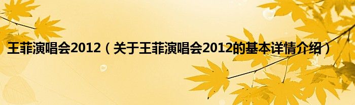 本文关于王菲演唱会2012的基本详情介绍就讲解完毕,希望对大家有所帮助。