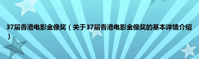 本文关于37届香港电影金像奖的基本详情介绍就讲解完毕,希望对大家有所帮助。