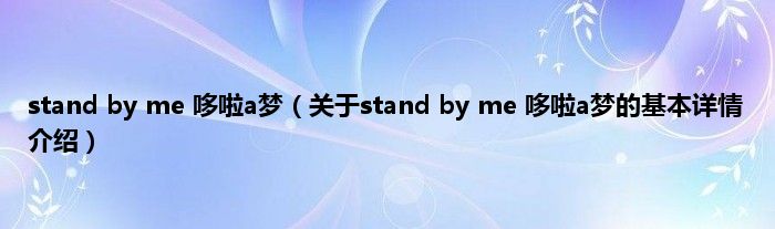 本文关于stand by me 哆啦a梦的基本详情介绍就讲解完毕,希望对大家有所帮助。