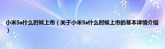 本文关于小米5s什么时候上市的基本详情介绍就讲解完毕,希望对大家有所帮助。