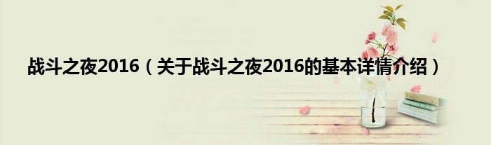 本文关于战斗之夜2016的基本详情介绍就讲解完毕,希望对大家有所帮助。