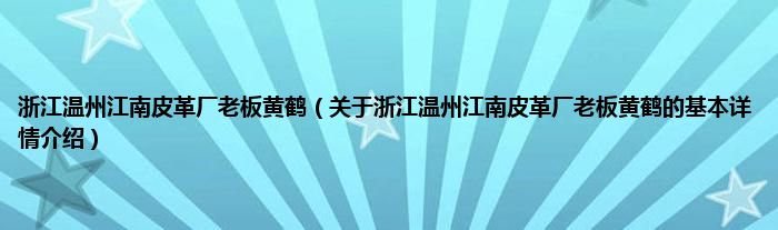 本文关于浙江温州江南皮革厂老板黄鹤的基本详情介绍就讲解完毕,希望对大家有所帮助。