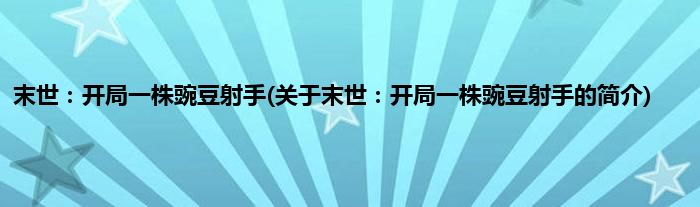 本文关于末世:开局一株豌豆射手的简介就讲解完毕,希望对大家有所帮助。