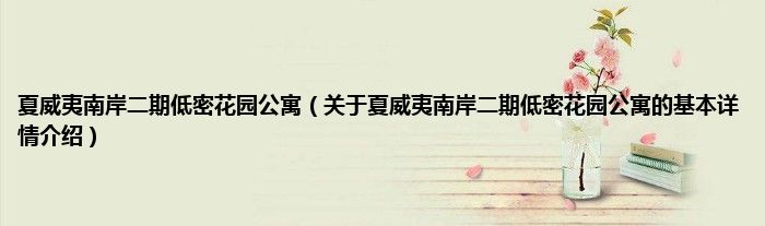 本文关于夏威夷南岸二期低密花园公寓的基本详情介绍就讲解完毕,希望对大家有所帮助。