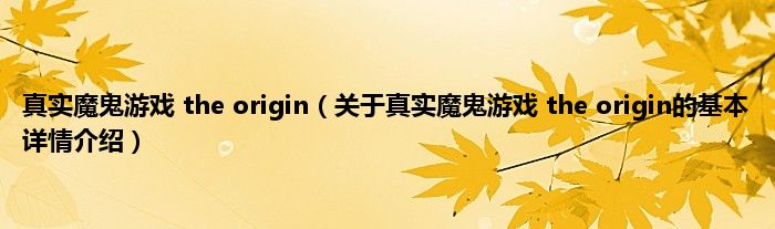 本文关于真实魔鬼游戏 the origin的基本详情介绍就讲解完毕,希望对大家有所帮助。
