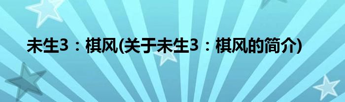本文关于未生3:棋风的简介就讲解完毕,希望对大家有所帮助。
