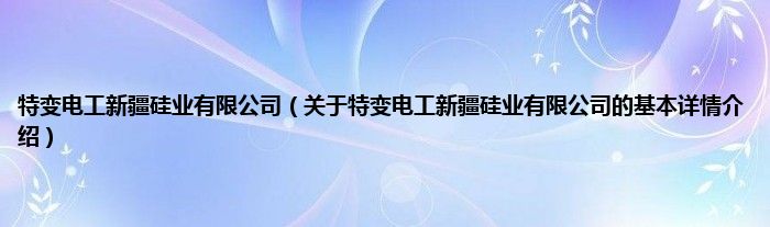 大家好我是小蝌蚪,特变电工新疆硅业有限公司,关于特变电工新疆硅业有限公司的基本详情介绍很多人还不知道,那么现在让我们一起来看看吧!