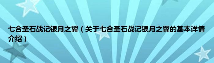 本文关于七合圣石战记银月之翼的基本详情介绍就讲解完毕,希望对大家有所帮助。