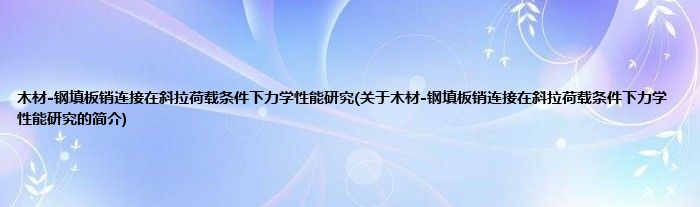 本文关于木材-钢填板销连接在斜拉荷载条件下力学性能研究的简介就讲解完毕,希望对大家有所帮助。