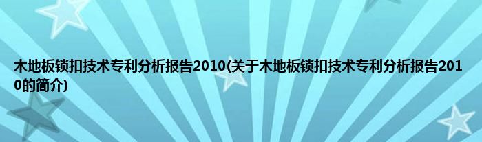 本文关于木地板锁扣技术专利分析报告2010的简介就讲解完毕,希望对大家有所帮助。