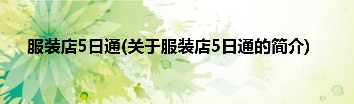 大家好,服装店5日通,关于服装店5日通的简介很多人还不知道,现在让我们一起来看看吧!