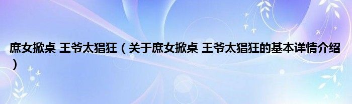 本文关于庶女掀桌 王爷太猖狂的基本详情介绍就讲解完毕,希望对大家有所帮助。