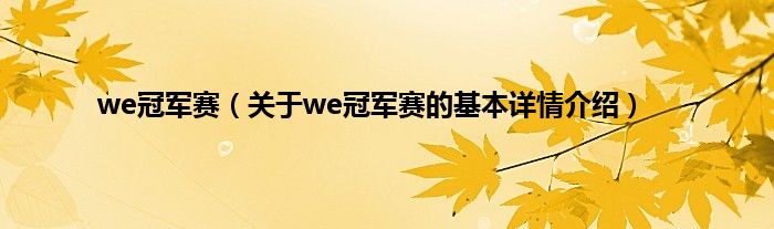本文关于we冠军赛的基本详情介绍就讲解完毕,希望对大家有所帮助。