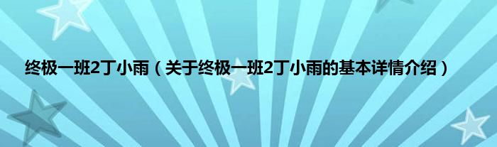 本文关于终极一班2丁小雨的基本详情介绍就讲解完毕,希望对大家有所帮助。
