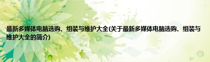 本文关于最新多媒体电脑选购、组装与维护大全的简介就讲解完毕,希望对大家有所帮助。
