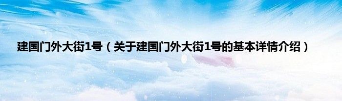 大家好我是小蝌蚪,建国门外大街1号,关于建国门外大街1号的基本详情介绍很多人还不知道,那么现在让我们一起来看看吧!