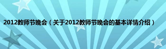 本文关于2012教师节晚会的基本详情介绍就讲解完毕,希望对大家有所帮助。