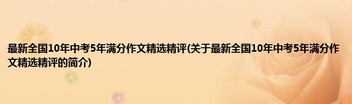 本文关于最新全国10年中考5年满分作文精选精评的简介就讲解完毕,希望对大家有所帮助。