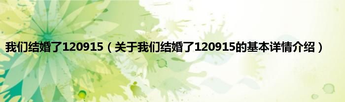 本文关于我们结婚了120915的基本详情介绍就讲解完毕,希望对大家有所帮助。