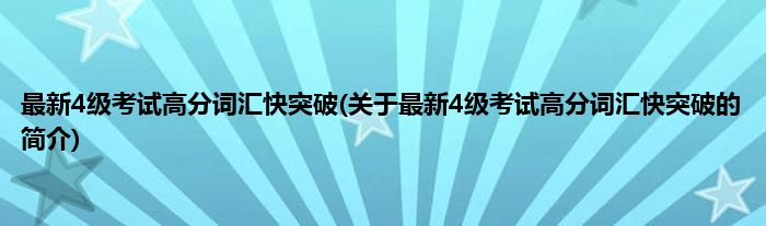 本文关于最新4级考试高分词汇快突破的简介就讲解完毕,希望对大家有所帮助。