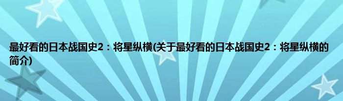 本文关于最好看的日本战国史2:将星纵横的简介就讲解完毕,希望对大家有所帮助。