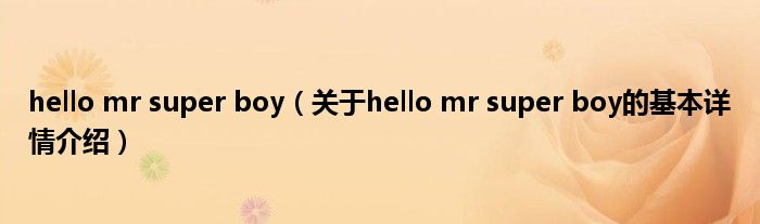 本文关于hello mr super boy的基本详情介绍就讲解完毕,希望对大家有所帮助。