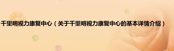 本文关于千里明视力康复中心的基本详情介绍就讲解完毕,希望对大家有所帮助。