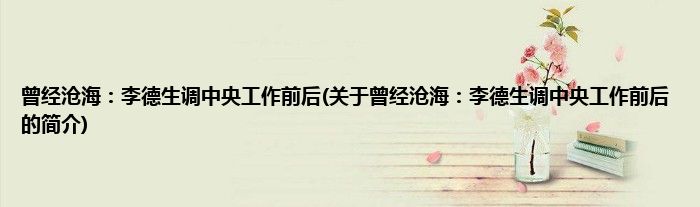 本文关于曾经沧海:李德生调中央工作前后的简介就讲解完毕,希望对大家有所帮助。