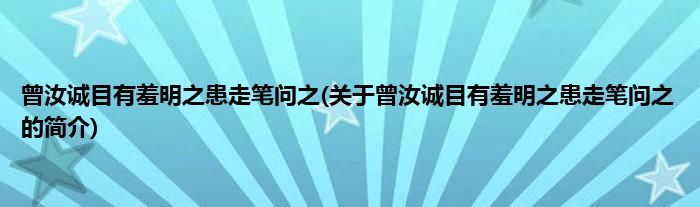 大家好,曾汝诚目有羞明之患走笔问之,关于曾汝诚目有羞明之患走笔问之的简介很多人还不知道,现在让我们一起来看看吧!