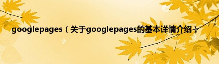 本文关于googlepages的基本详情介绍就讲解完毕,希望对大家有所帮助。