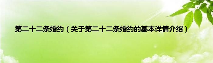 本文关于第二十二条婚约的基本详情介绍就讲解完毕,希望对大家有所帮助。