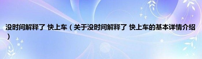 本文关于没时间解释了 快上车的基本详情介绍就讲解完毕,希望对大家有所帮助。