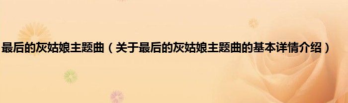 本文关于最后的灰姑娘主题曲的基本详情介绍就讲解完毕,希望对大家有所帮助。